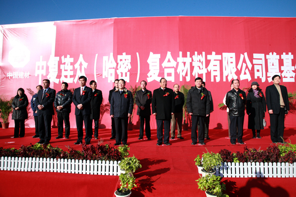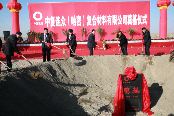 中國建材集團副總經(jīng)理郭朝民、中國建材報社社長(cháng)陳才來(lái)、中國復合材料集團公司董事長(cháng)、總經(jīng)理張定金、哈密地委書(shū)記郭連山、哈密地區政協(xié)工委主任魏天哲、哈密行署副專(zhuān)員牙森·斯地克等出席奠基儀式。中國復合材料集團公司副總經(jīng)理、連云港中復連眾集團公司董事長(cháng)任桂芳主持儀式。