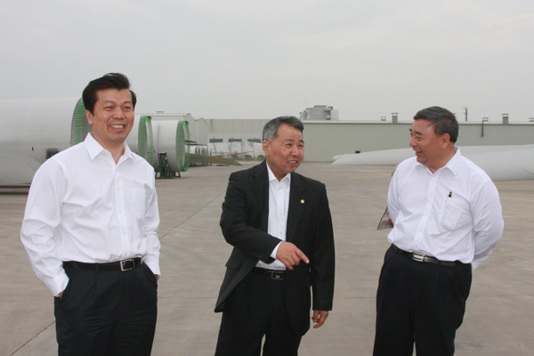 考察過(guò)程中,宋志平介紹到中復連眾目前已發(fā)展成為全球前三、亞洲最大的風(fēng)力機葉片制造商,連續三年國內市場(chǎng)占有率第一,葉片累積銷(xiāo)售5000套,裝機8000MW,各種規格的葉片在國內外200多個(gè)風(fēng)場(chǎng)安裝運行。中復連眾在研發(fā)5MW以上和海上風(fēng)電葉片方面積極創(chuàng )新發(fā)展,形成了技術(shù)領(lǐng)先的競爭優(yōu)勢。成功收購德國NOI公司,設立海外研發(fā)中心SINOI,奠定了國際化的良好基礎。