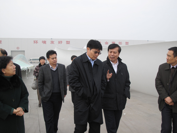 12月21日,華銳風(fēng)電科技有限公司董事長(cháng)、總裁韓俊良來(lái)到連云港中復連眾,考察了國內首個(gè)風(fēng)機葉片室內全尺寸結構試驗室和6MW葉片生產(chǎn)車(chē)間。中國復材董事長(cháng)張定金、中復連眾董事長(cháng)任桂芳陪同考察。
