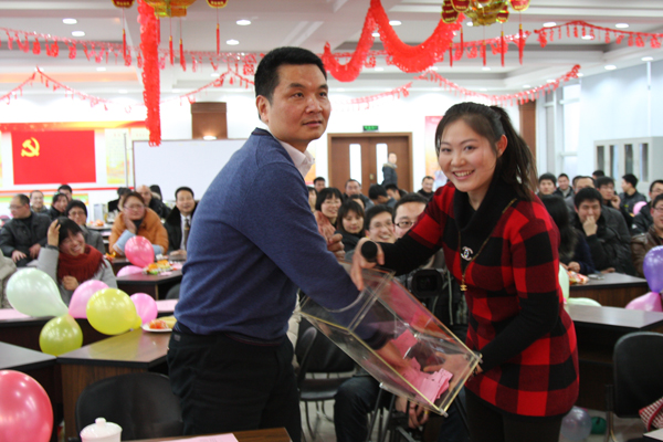 聯(lián)歡會(huì )還特別安排現場(chǎng)抽獎活動(dòng),共抽取了2個(gè)特等獎、5個(gè)一等獎、10個(gè)二等獎和20個(gè)三等獎。獲獎?dòng)^眾五人一組參與了60秒不NG、心有靈犀、瘋狂大搜索三項互動(dòng)活動(dòng),“笑”果不斷。在帶給大家好運的同時(shí),高管還紛紛登臺獻藝,與職工同樂(lè )。喬光輝總經(jīng)理和行政部吳霏霏帶來(lái)《北國之春》;王彤兵副總經(jīng)理獨唱《月亮代表我的心》;耿婷芳副總經(jīng)理、行政部朱維新對唱《祈禱》,一首首經(jīng)典老歌,一聲聲祝福,將晚會(huì )推向高潮。