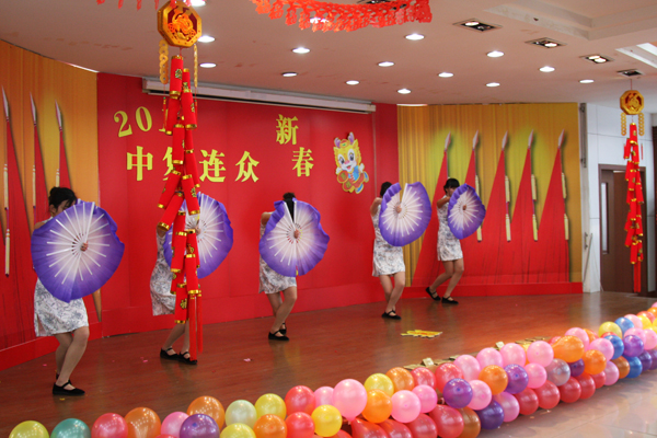歡歌勁舞慶盛世,龍騰虎躍賀新春。1月17日,中復連眾五樓多功能廳內張燈結彩、座無(wú)虛席,洋溢著(zhù)喜慶祥和的節日氣氛。中復連眾2012年春節聯(lián)歡晚會(huì )在這里隆重舉行,公司領(lǐng)導與120名職工一起觀(guān)看演出,共同慶祝龍年新春佳節的到來(lái)。