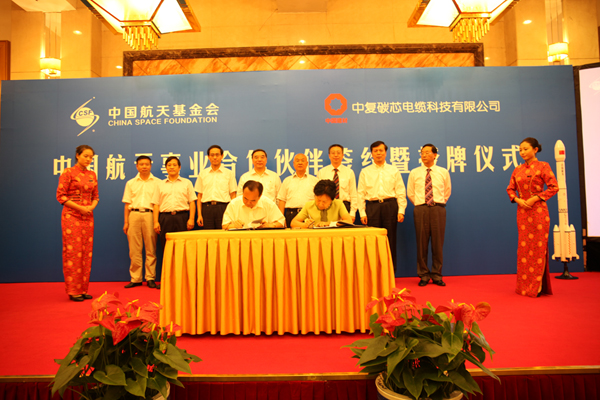 6月26日,中復碳芯電纜科技有限公司與中國航天基金會(huì )在京共同舉行簽約暨授牌儀式,由中國航天基金會(huì )授予中復碳芯公司“中國航天事業(yè)合作伙伴”稱(chēng)號及牌匾。中國航天基金會(huì )理事長(cháng)張建啟、秘書(shū)長(cháng)張玉江,中國建材集團董事長(cháng)宋志平,中國復合材料集團董事長(cháng)張定金,中復碳芯董事長(cháng)任桂芳、執行董事謝建平等雙方領(lǐng)導出席了儀式。本報總編輯孟憲江應邀出席了儀式。中復碳芯公司成為電線(xiàn)電纜行業(yè)內唯一獲此殊榮的專(zhuān)業(yè)碳纖維復合芯導線(xiàn)生產(chǎn)企業(yè)。