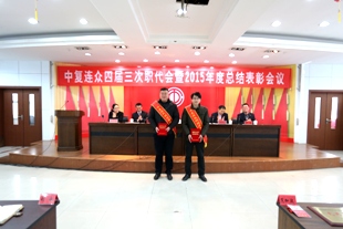 副總經(jīng)理、工會(huì )主席王彤兵作了題為《凝心聚力 服務(wù)發(fā)展 努力開(kāi)創(chuàng )中復連眾工會(huì )工作新局面》的工會(huì )工作報告?;仡櫩偨Y了2015年在推進(jìn)民主管理、建設職工隊伍、弘揚勞模精神、構建勞動(dòng)安全保障機制、展現職工精神風(fēng)貌、職工幫扶體系建設等方面取得的成效,深刻剖析了存在的不足,并就2016年工會(huì )工作布置了四個(gè)方面的工作:一是進(jìn)一步組織動(dòng)員職工,在融入中心工作上下功夫;二是進(jìn)一步教育引導職工,在堅定理想信念上下功夫;三是進(jìn)一步聯(lián)系服務(wù)職工,在推進(jìn)民主管理上下功夫;四是進(jìn)一步履行職責,在加強工會(huì )自身建設上下功夫。