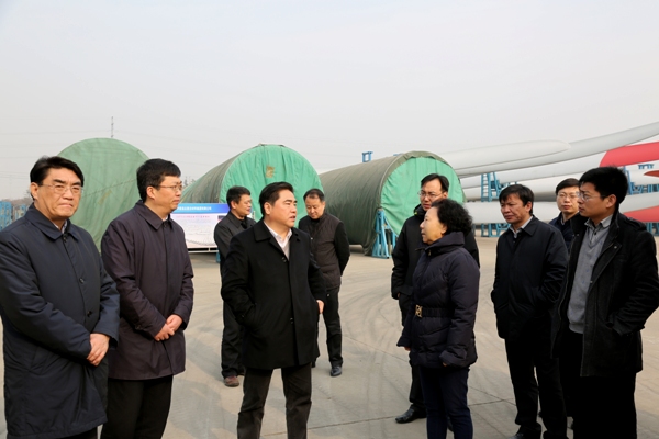 2月4日,在市委常委、連云港經(jīng)濟技術(shù)開(kāi)發(fā)區黨工委書(shū)記關(guān)永健的陪同下,連云港市市長(cháng)項雪龍到中復連眾走訪(fǎng)慰問(wèn),實(shí)地參觀(guān)10兆瓦試驗臺、葉片生產(chǎn)車(chē)間和75米-6.0MW葉片,深入了解企業(yè)2015年生產(chǎn)經(jīng)營(yíng)情況,代表市委市政府向中復連眾全體員工致以新春的祝福。中復連眾董事長(cháng)任桂芳、總經(jīng)理喬光輝向來(lái)賓一行做情況介紹。