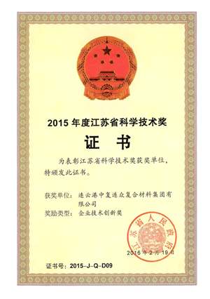 中復連眾喜獲2015年度江蘇省企業(yè)技術(shù)創(chuàng )新獎
