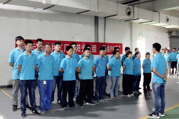 6月16日,晨會(huì )決賽現場(chǎng),5個(gè)參賽班組的員工穿著(zhù)統一的工作服,每個(gè)人都是精神飽滿(mǎn),喊著(zhù)班組口號,充滿(mǎn)了斗志和干勁。晨會(huì )雖然只有短短十分鐘的時(shí)間,但是內容卻很豐富,總結前一天的工作,指出不足,表?yè)P優(yōu)秀員工,同時(shí)針對生產(chǎn)計劃、效率、質(zhì)量、安全、成本、現場(chǎng)環(huán)境等工作中應該注意的重點(diǎn)事項做出要求和說(shuō)明,最后布置當天生產(chǎn)任務(wù)。評委從會(huì )議組織、儀容儀表、隊列隊形、晨會(huì )內容、時(shí)間把握等五個(gè)方面為每個(gè)班組打分。