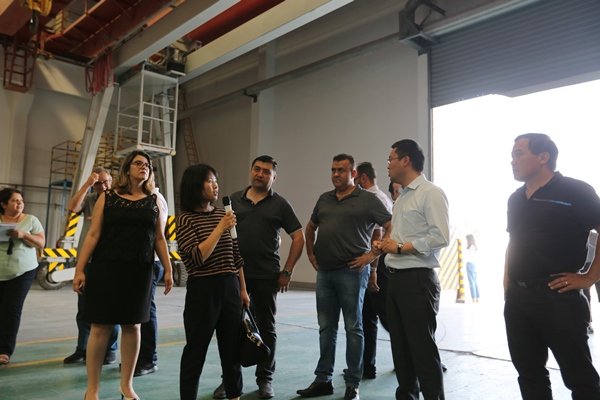 6月11日下午,在巴西中國商會(huì )葉康妙會(huì )長(cháng)的陪同下,羅德里戈·阿什烏奇率領(lǐng)的巴西圣保羅州代表團一行來(lái)到中復連眾連云港葉片基地參觀(guān)考察,中復連眾副總經(jīng)理梁穎熱情接待了代表團一行。